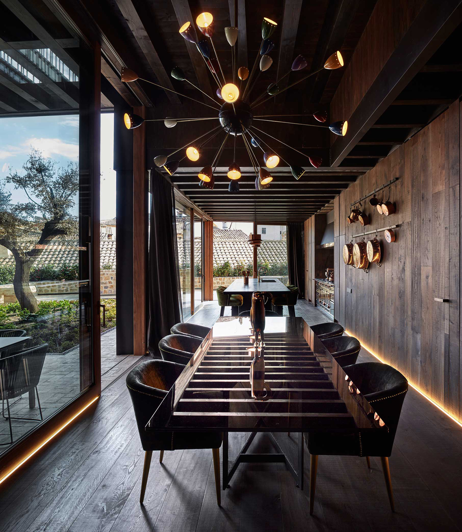 Použitie tmavého dreva v kombinácii s čiernymi prvkami nábytku priestor zútulňuje a vytvára príjemné prostredie pre pokojný život.
