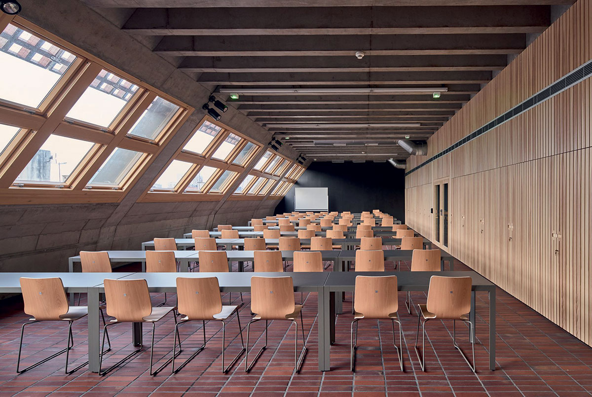 Cez zdanlivo plnú fasádu v skutočnosti preniká dostatok svetla.