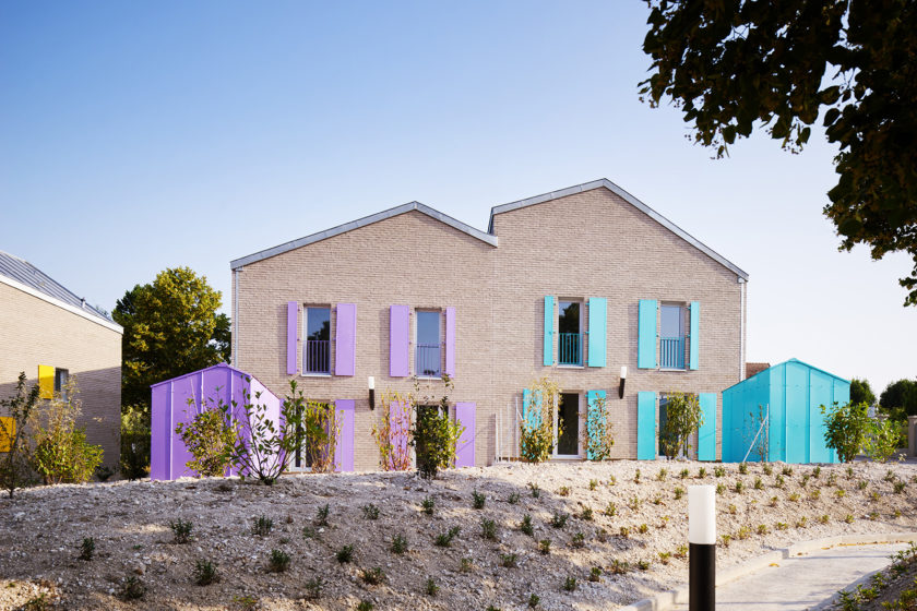 Pieskové sfarbenie svetlých pálených lícových tehál s jemne ružovým nádychom je v harmónii s okolitým prostredím a vytvára pocit, že tu domy stoja odjakživa. Archetypálny tvar objektov má bližšie k manufaktúram na výrobu šampanského, rozšíreným po okolí, ako k rodinným domom. Šikmé pozinkované plechové strechy nie sú práve tým, čo by miestnym obyvateľom navodzovalo pocit tepla domova.