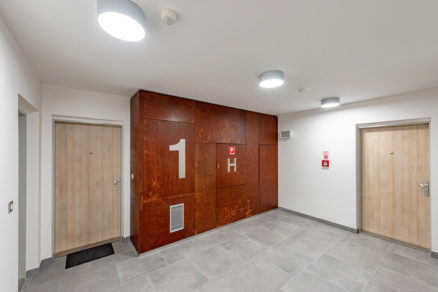 Byty v celkovom počte 408 (345 bytov a 63 apartmánov) sú dokončené v štandarde so sadrovými omietkami, laminátovými parketami hrúbky 8 mm a kompletným kúpeľňovým vybavením. Balkóny s podlahovou vrstvou z prírodného dreva. V spoločných priestoroch dominujú cortenové steny prekrývajúce technologické vybavenie a veľkoformátová keramická dlažba spájajúca priestor vizuálne.