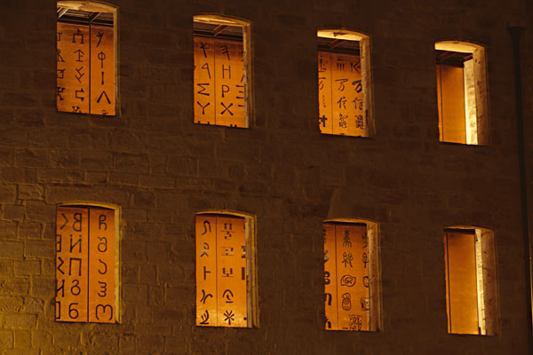 V prípade múzea Champollion zastupujú orientálnu dekoratívnu mriežku staroveké znaky, ale princíp zostáva rovnaký a podobne ako v Egypte či arabských krajinách sa použil iba na fasády smerujúce do ulice. Fólia presvitá iba v mieste znaku, čo vytvára zaujímavú hru so svetlom vo vnútri dispozícii a dokresľuje atmosféru výstavy. Zároveň zabraňuje prieniku prirodzeného svetla, ktoré býva pre historické exponáty obvykle nežiaduce. V noci sa zasa stáva súčasťou svetiel mesta.