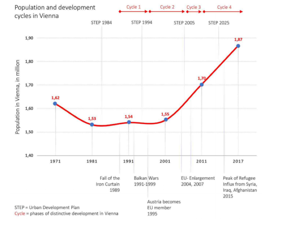 Vývoj počtu obyvateľov Viedne, ktorý môže byť jeden z indikátorov toho, že mesto naozaj láka nových obyvateľov kvalitou života v ňom.