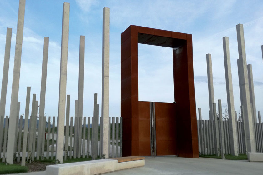Pietnosť miesta a prírodný charakter určili materiálové a výtvarné riešenie. Celému priestoru dominujú tri prvky: drevo, betón a cortenová oceľ, ktorú architekti chápu ako symbol postupného starnutia. Monumentálna západná brána je akoby portálom medzi dvoma svetmi.