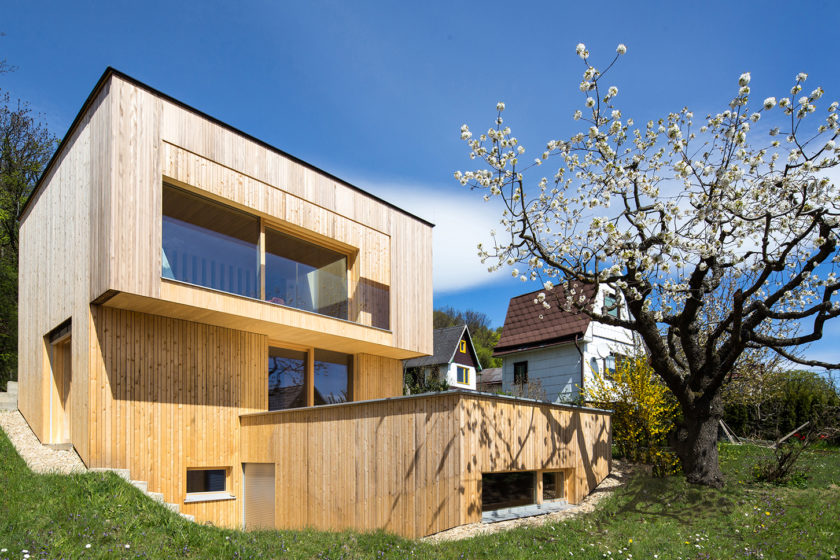 Rodinný dom na svahovitom pozemku s krásnou čerešňou bol koncipovaný ako hlavná rezidencia pre viedenský pár. Architekt sa snažil nájsť optimálne riešenie tak, aby efektívne využil svah a orientáciu na svetové strany, čím je do veľkej miery daná úspornosť domu, ale pritom dodržal všetky stavebné zákony a normy platné v danej oblasti. Výsledkom je harmonický drevodom, efektne zapasovaný do prostredia, ktoré neruší, naopak, harmonizuje s ním.
