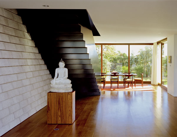 Už samotné využitie múrov na skomponovanie série schodovitých línií na priečelí naznačuje, že ide o nevšedný dom. Vzhľadom na to, čo sa skrýva za múrmi, vzhľadom na architekta, investora, ale aj na cenu domu je však slovo nevšedný veľmi zdržanlivý výraz. Dom navrhol Richard Gluckman, známy najmä projektmi pre svetové múzeá, investorom je bývalý člen vedenia veľkej, aj u nás známej firmy, cena domu by bola nadpriemerná aj v najlukratívnejších amerických lokalitách. Tie sa však nachádzajú v Kalifornii a New Yorku a na tunajšie pomery je cena ešte exkluzívnejšia.