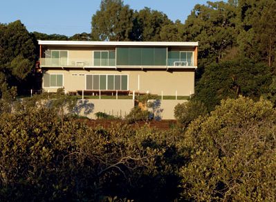 Dom nie je rozľahlý ani pôdorysne komplikovaný. Záhradná časť nie je oveľa väčšia ako zatrávnená plocha pred domom, ktorá by sa dala nazvať anglickým trávnikom – taká je udržiavaná, ibaže by to bolo nepresné vzhľadom na rastlinstvo. Všetky obytné miestnosti sú na jedinom podlaží (ktoré je z jednej strany prístupné z ulice, z druhej otvorené výhľadu) a celý interiér tvoria len tri celky. Na ústredný obytný priestor s kuchyňou a jedálňou na poschodí nadväzuje súkromná časť s dvoma spálňami, šatníkom a kúpeľňami, všetko lemované terasou s výhľadom na záliv. Schodmi sa schádza do pracovnej časti, kde je garáž, pracovňa a byt pre personál.