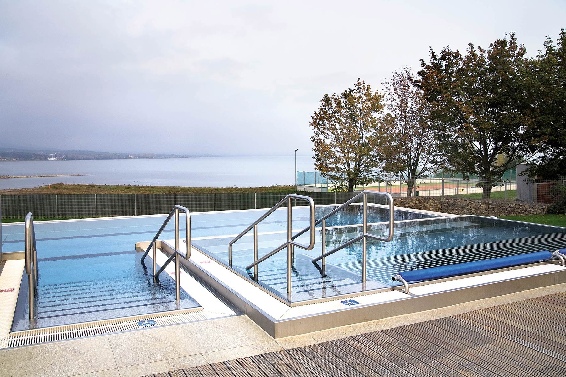 Pre dlhodobé zabezpečenie životnosti povrchov okolo vnútorných i vonkajších bazénov a dosiahnutie dokonalej vodotesnosti bolo nevyhnutné ošetriť celý povrch vhodnou hydroizolačnou vrstvou. Pre dosiahnutie vyšších finálnych parametrov sa odporučilo zapracovať do prvej vrstvy hydroizolačnej membrány netkanú makroperforovanú polypropylénovú textíliu, ktorá je odolná proti pôsobeniu alkalických vplyvov a je určená na vystužovanie hydroizolačných membrán.