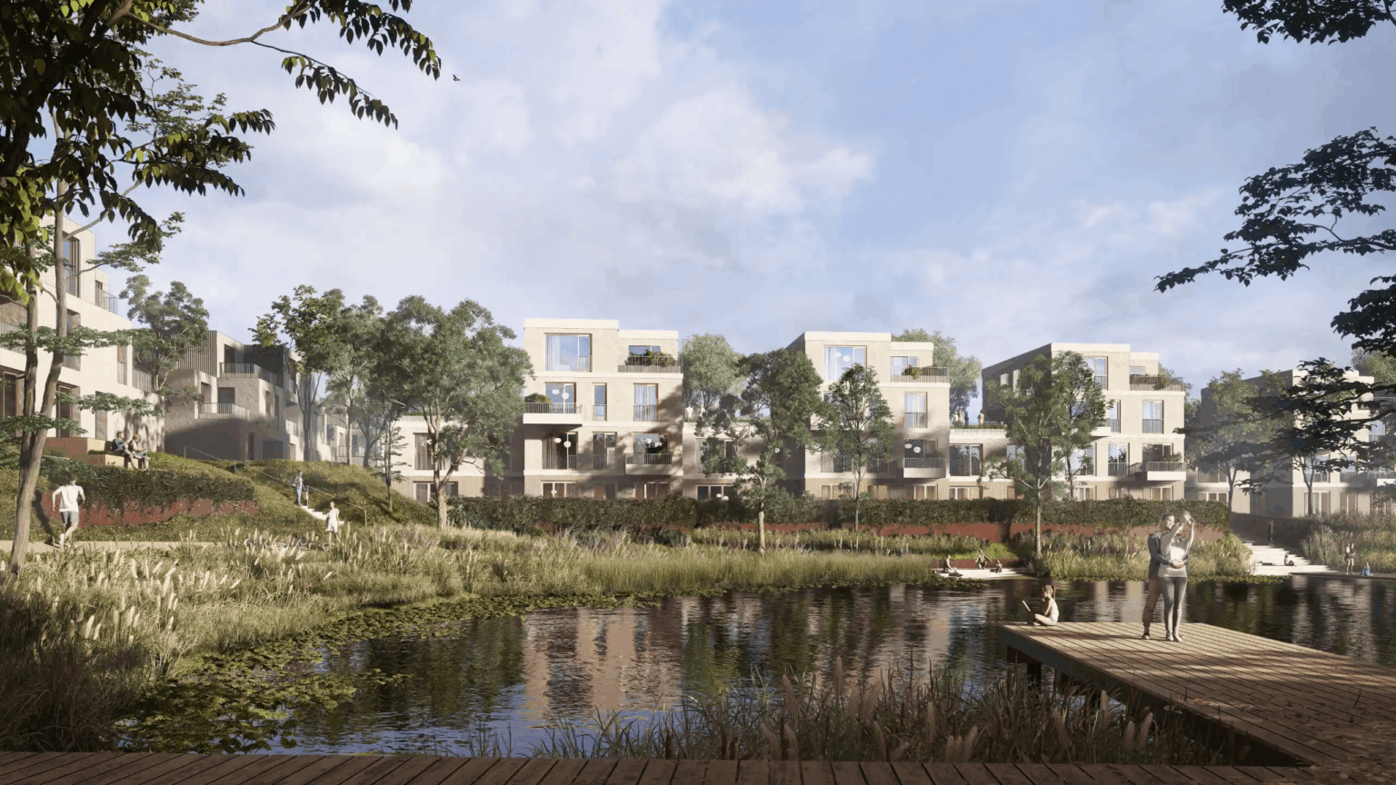 Bývanie v novej mestskej štvrti bolo navrhnuté v rôznych typoch bytových objektov od bytových domov s nízkou podlažnosťou cez viladomy až po rodinné domy. Celková zastavaná plocha dosiahne 26 377 štvorcových metrov.
