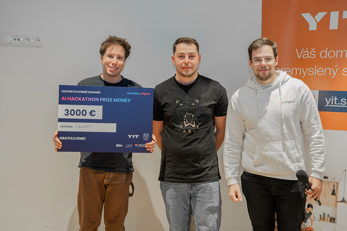 Členovia tímu pod názvom Origami – Adam Jankech, Martin Šilon a Oliver Ščurok – predstavili funkčný koncept platformy, ktorá zjednodušuje podávanie žiadostí v rámci stavebného konania. Ich riešenie prevedie žiadateľa intuitívnym formulárom s automatickou validáciou údajov, generovaním potrebných dokumentov a okamžitým upozornením na chyby či chýbajúce náležitosti.