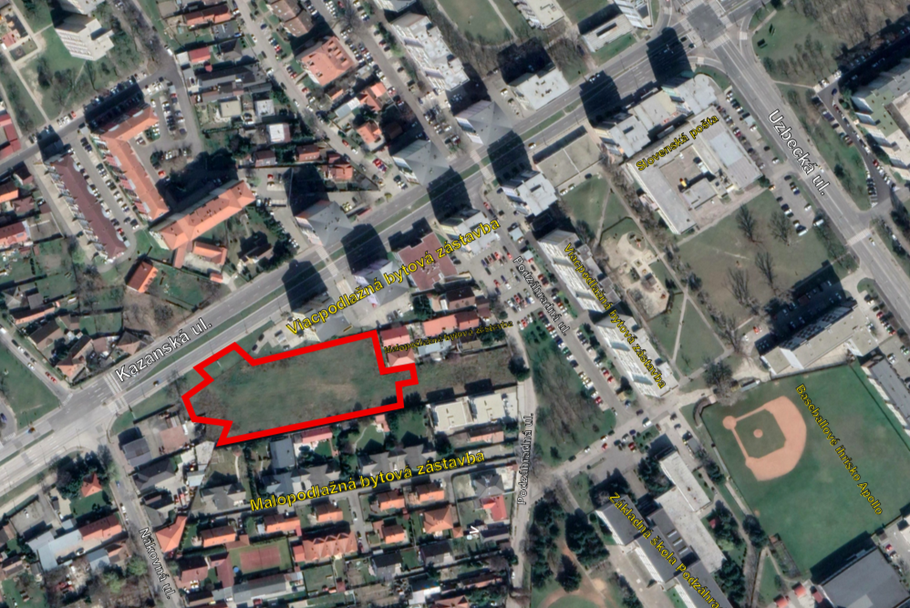 Navrhovaný objekt má byť situovaný medzi ulicami Kazanská a Podzáhradná. Areál susedí zo severu s Kazanskou ulicou a polyfunkčnými domami, z východu so záhradami rodinných domov a Podzáhradnou ulicou, a z juhu a západu rovnako so záhradami rodinných domov. Stavba predstavuje tri objekty prepojené halovou podzemnou garážou.