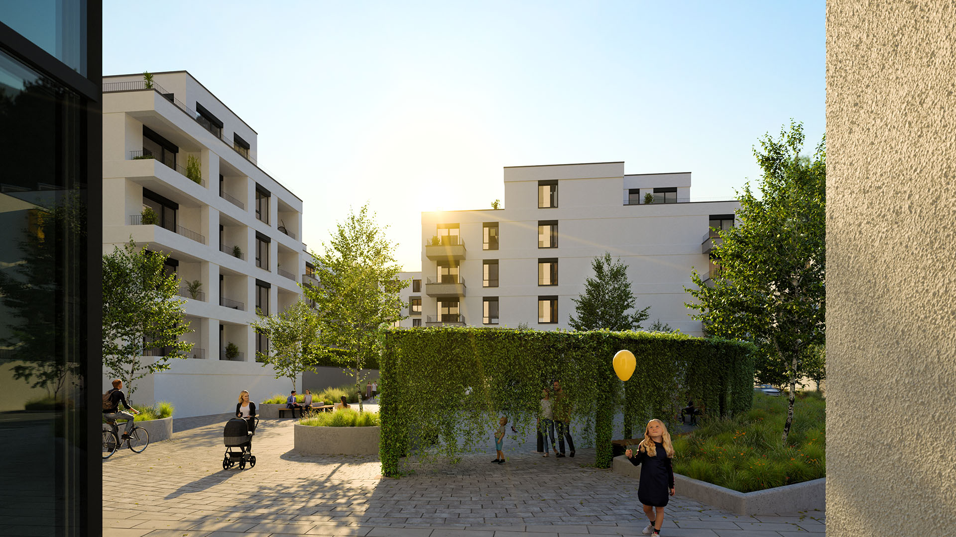 V okolí bytových domov postupne pribudne vzrastlá zeleň a verejné priestory zelene pozdĺž hranice s cintorínom.