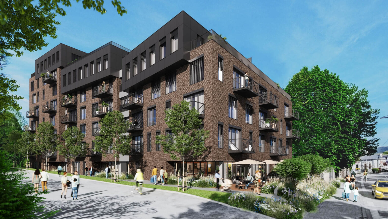 Vďaka ustúpeniu jednotlivých podlaží projekt prinesie aj rozľahlé strešné terasy plné zelene. „Snahou bolo vytvoriť nie len vonkajšiu atraktívnu architektúru, ale preniesť to aj do vnútra objektu. Presvetlené a priestranné byty, atraktívny parter s letnou terasou a zeleňou sú zárukou atraktívnosti pre budúcich užívateľov. Pamätali sme aj na príjemné a efektné večerné nasvetlenie fasád a exteriérov,” uvádzajú architekti.