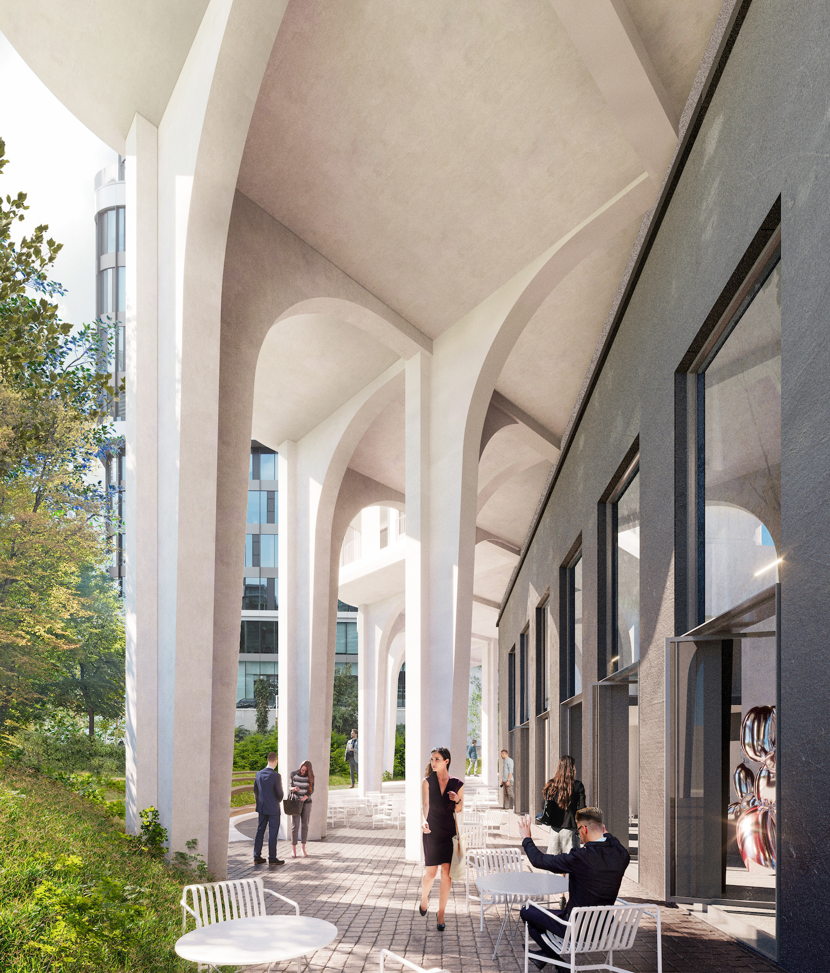 Bezprostredné okolie dotvoria kaviarne, oddychové zákutia, rozšírenie galérie alebo amfiteáter. Nový verejný priestor bude plynulo prechádzať od ulice, cez interiér do priľahlého malého urbánneho lesa. Rekonštrukcia zámočníckej dielne zase prinesie kultúrnu funkciu, čím zostane zachovaná charakteristická atmosféra tejto lokality. Koniec koncov, zachovanie kultúrneho genia loci potvrdil v podcaste Na betón aj Jakub Gossányi, riaditeľ developmentu spoločnosti Immocap.