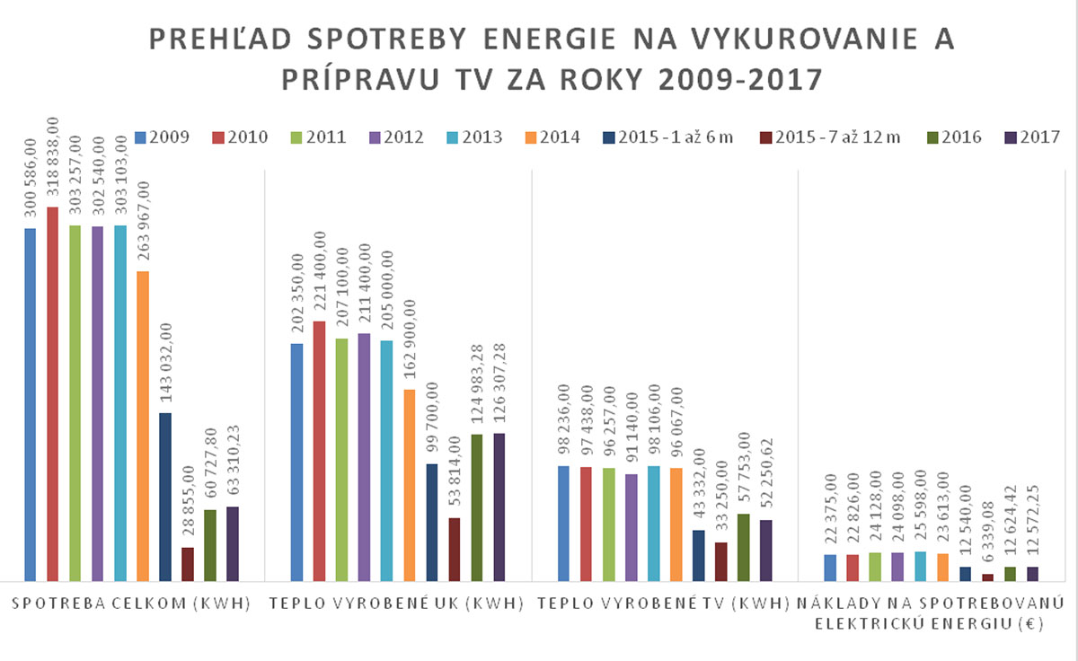 Graf 1 Prehľad spotreby energie na vykurovanie a prípravu teplej vody