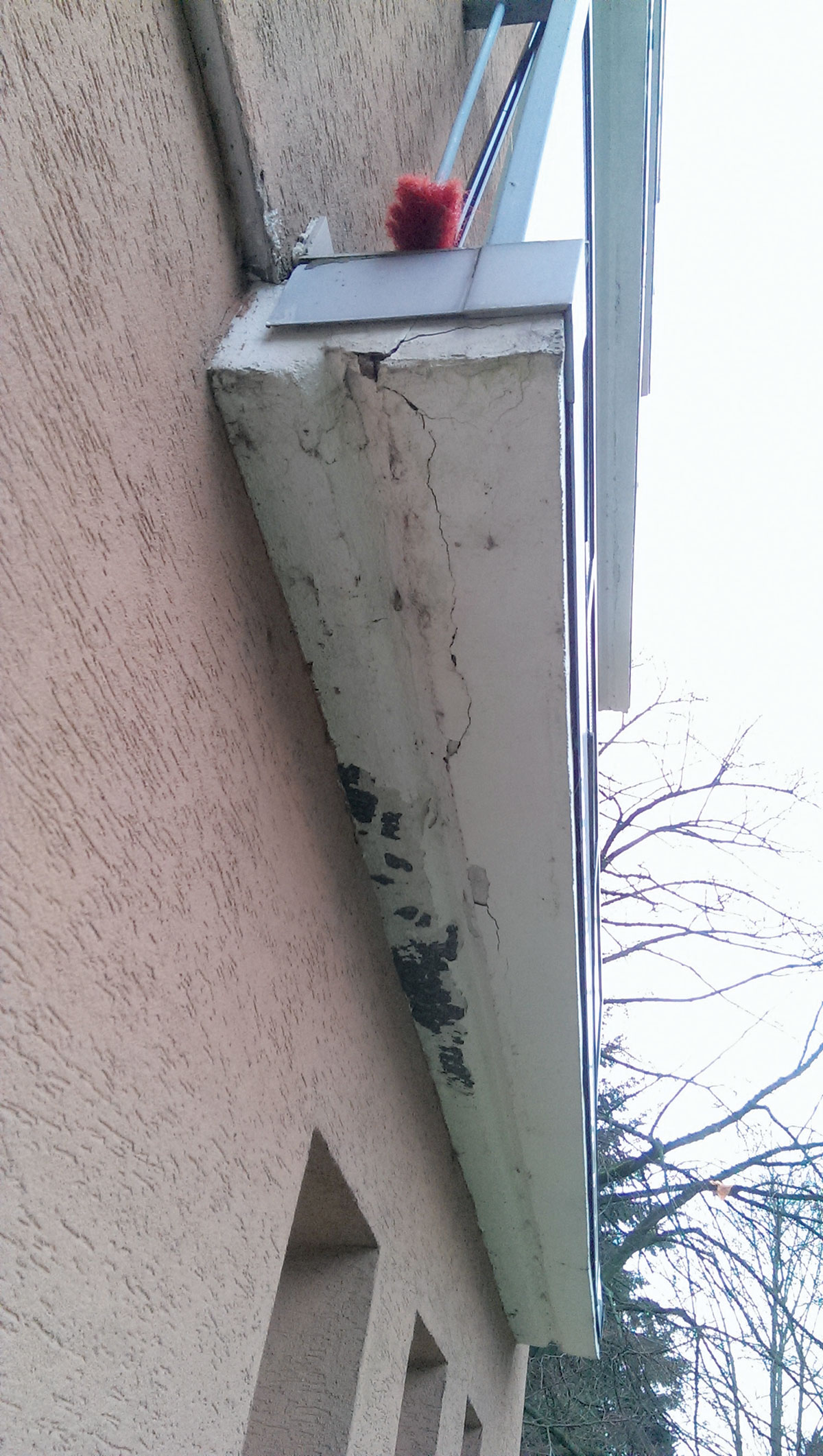 Obr. 2 Zatekanie pod dlažbu a opadávanie betónu z balkónových dosiek