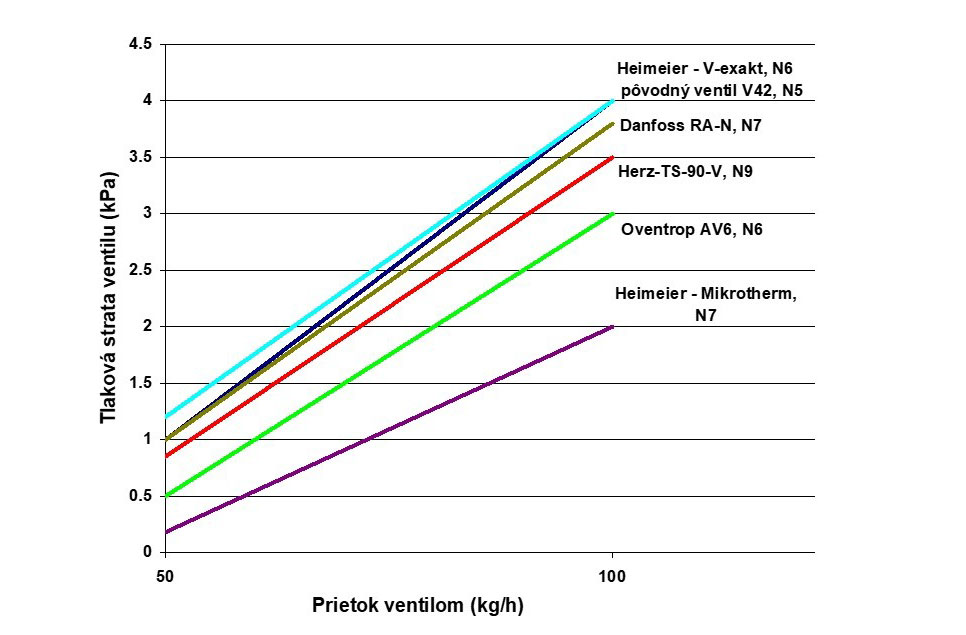 Obr. 5 Priebeh tlakových strát náhradných ventilov s určenou predvoľbou N pre požadovanú tlakovú stratu ventilu pri danom hmotnostnom prietoku