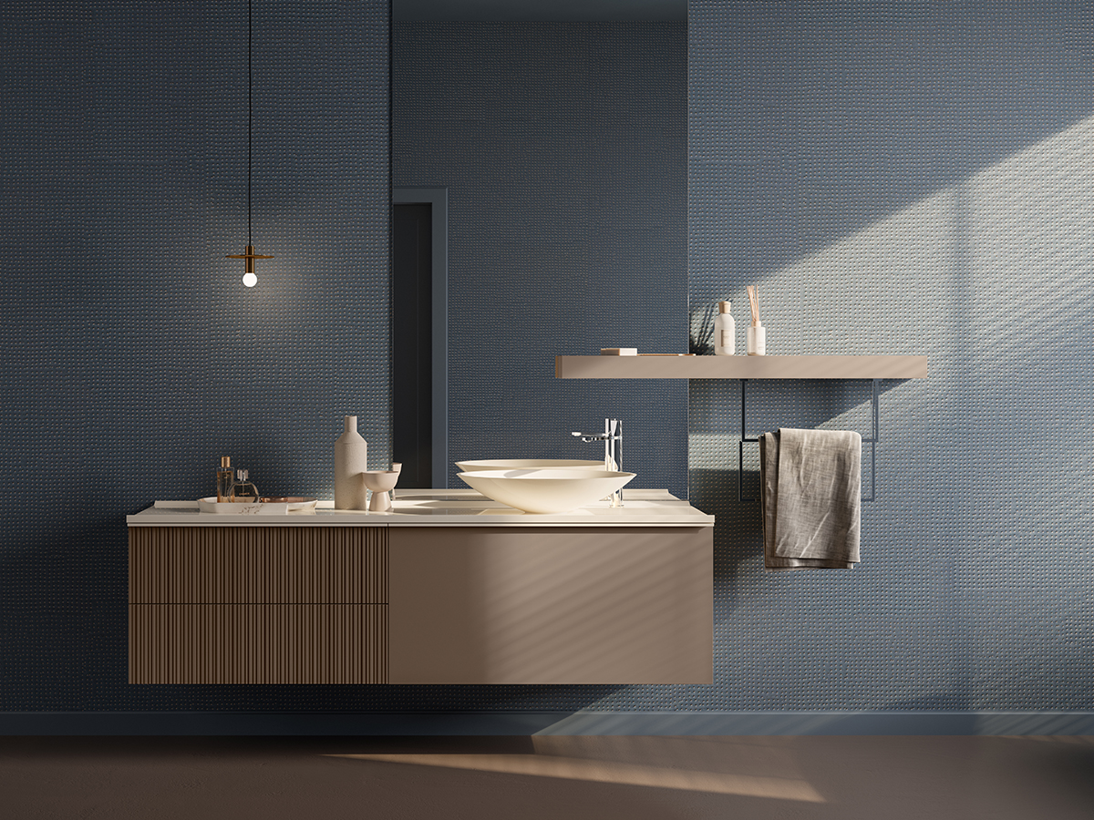 Charakteristickým prvkom RIGO sú horné dosky s lesklým povrchom Mineralmarmo vybavené ochranou proti stekaniu vody vpredu aj vzadu – praktické riešenie pre každodenné používanie. Dosky sú dostupné v rôznych dĺžkach, s centrálnym alebo bočným otvorom pre umývadlo, prípadne na dosku.