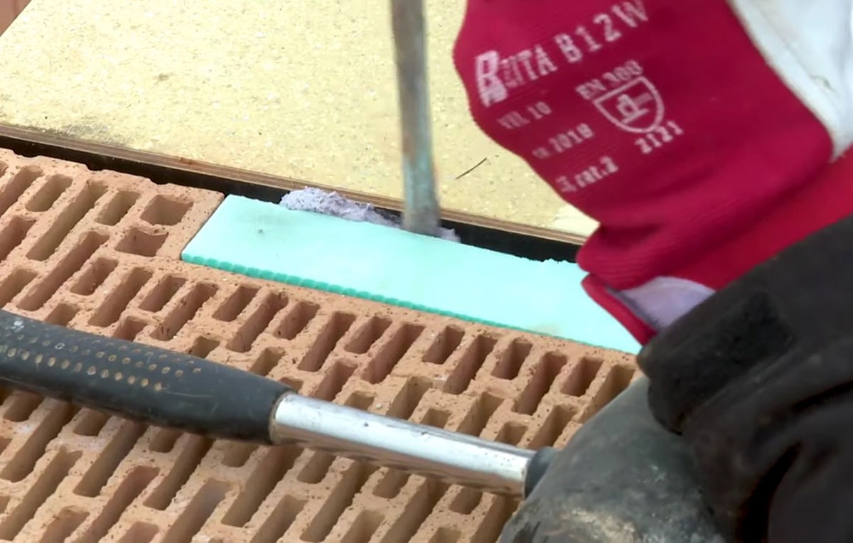 Medzery medzi murivom/tepelnou izoláciou a schránkou sa vyplnia nízkoexpanznou PU penou.