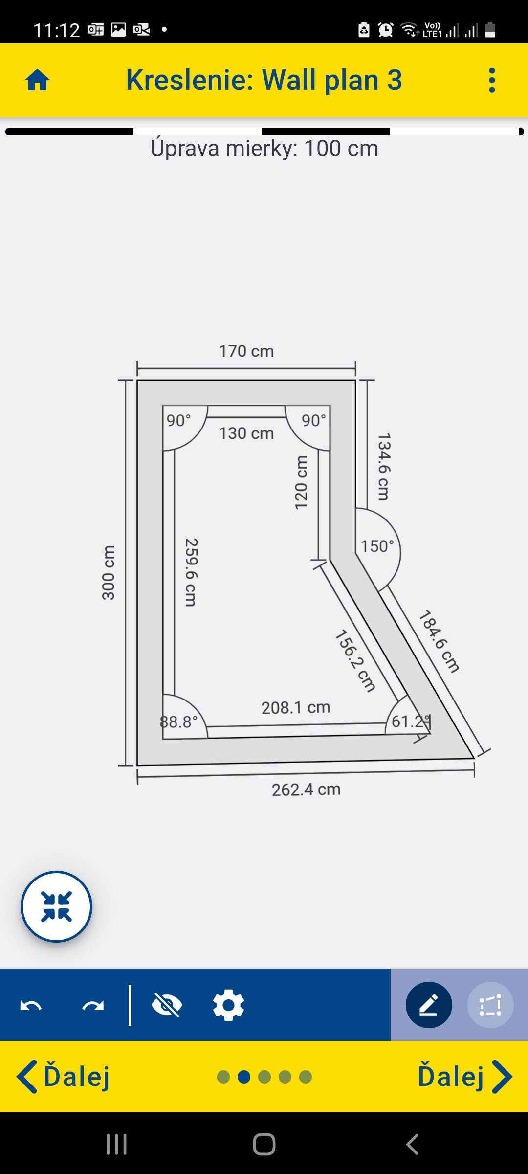 Krok 2: Pre zvislé konštrukcie jednoducho ťahaním prsta po displeji načrtnite steny. Rozmery sa ukazujú automaticky.