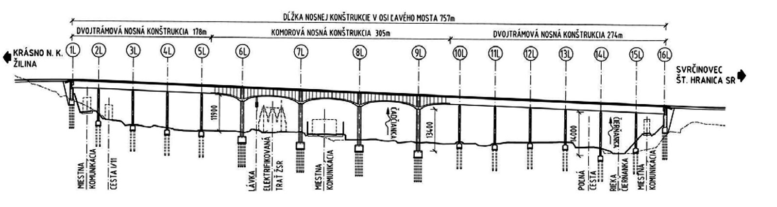 Obr. 7 Pozdĺžny rez ľavým mostom