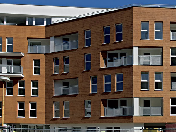 Pre uplatnenie minerálnej tenkovrstvovej omietky so štruktúrou prírodného dreva sa rozhodol investor v prípade bytového domu v Žiline, Vlčince (obr. 1 až 3).