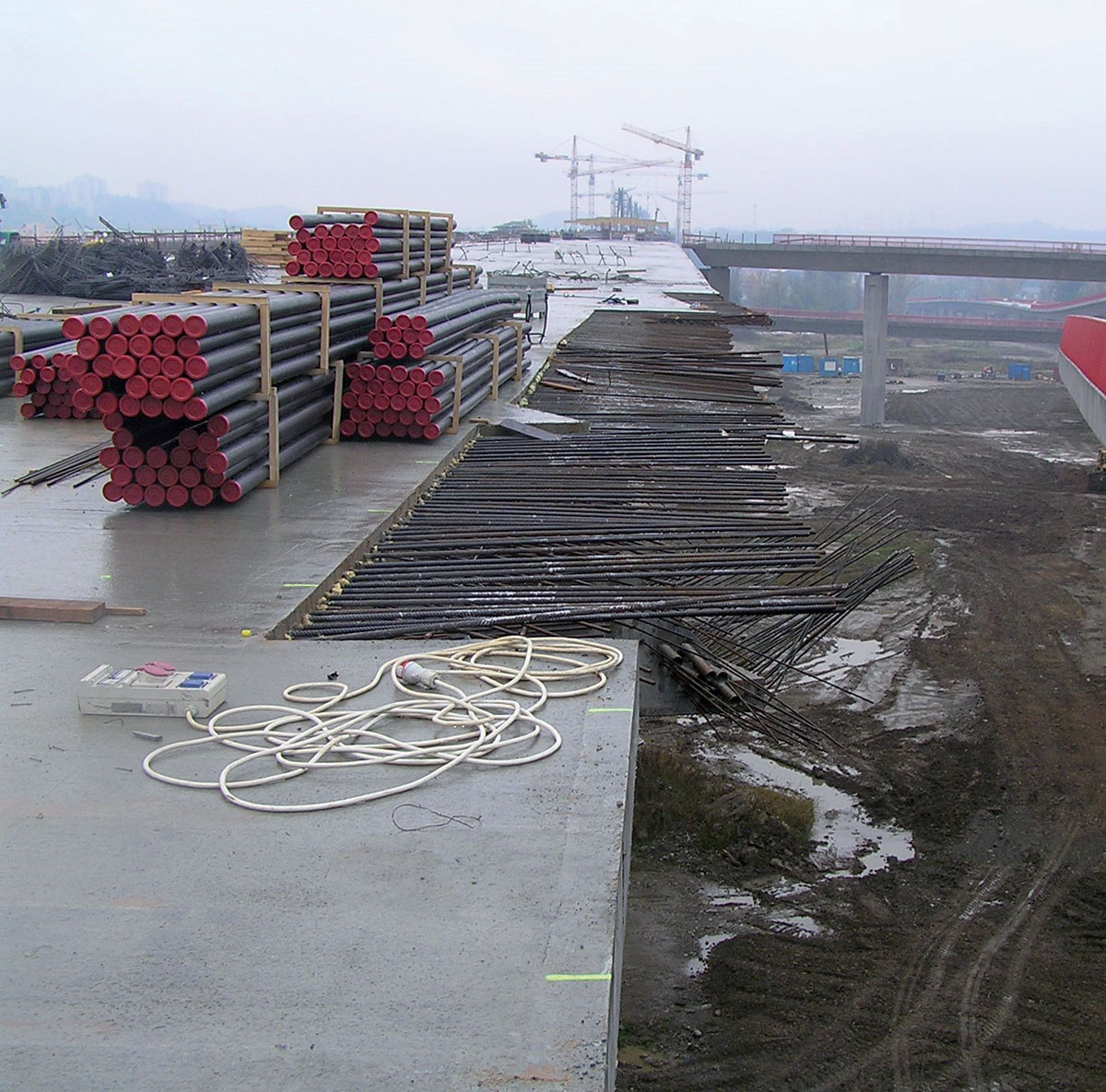 Obr. 7 Časť vysúvaného mosta na ktorý sa po vysunutí napojí most odbočujúcej vetvy budovanej na pevnej skruži