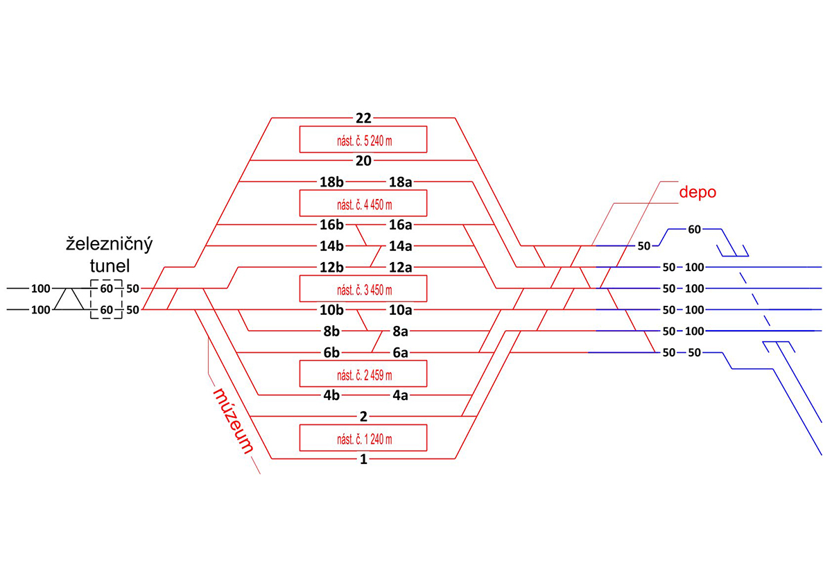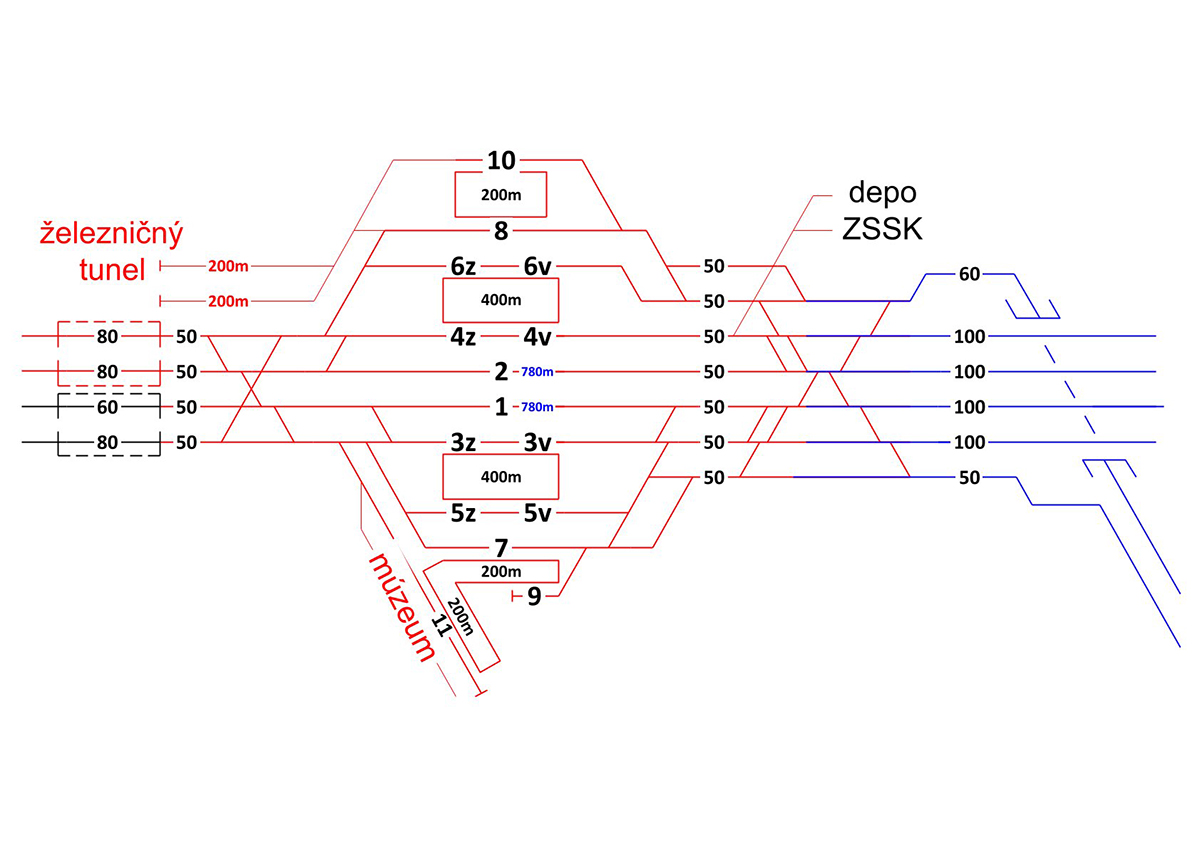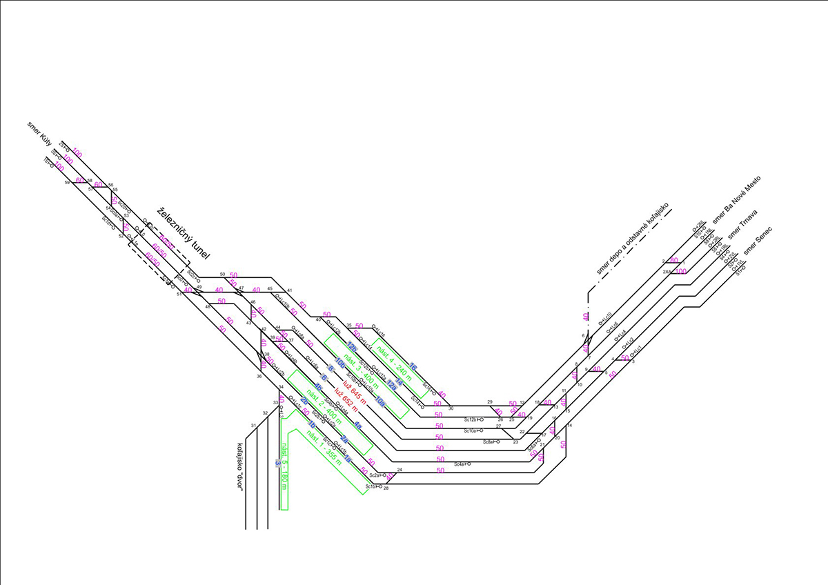 - odstránenie kolíznych bodov na zhlaví (vloženie ďalších koľajových spojok pre možnosť súčasných jázd,