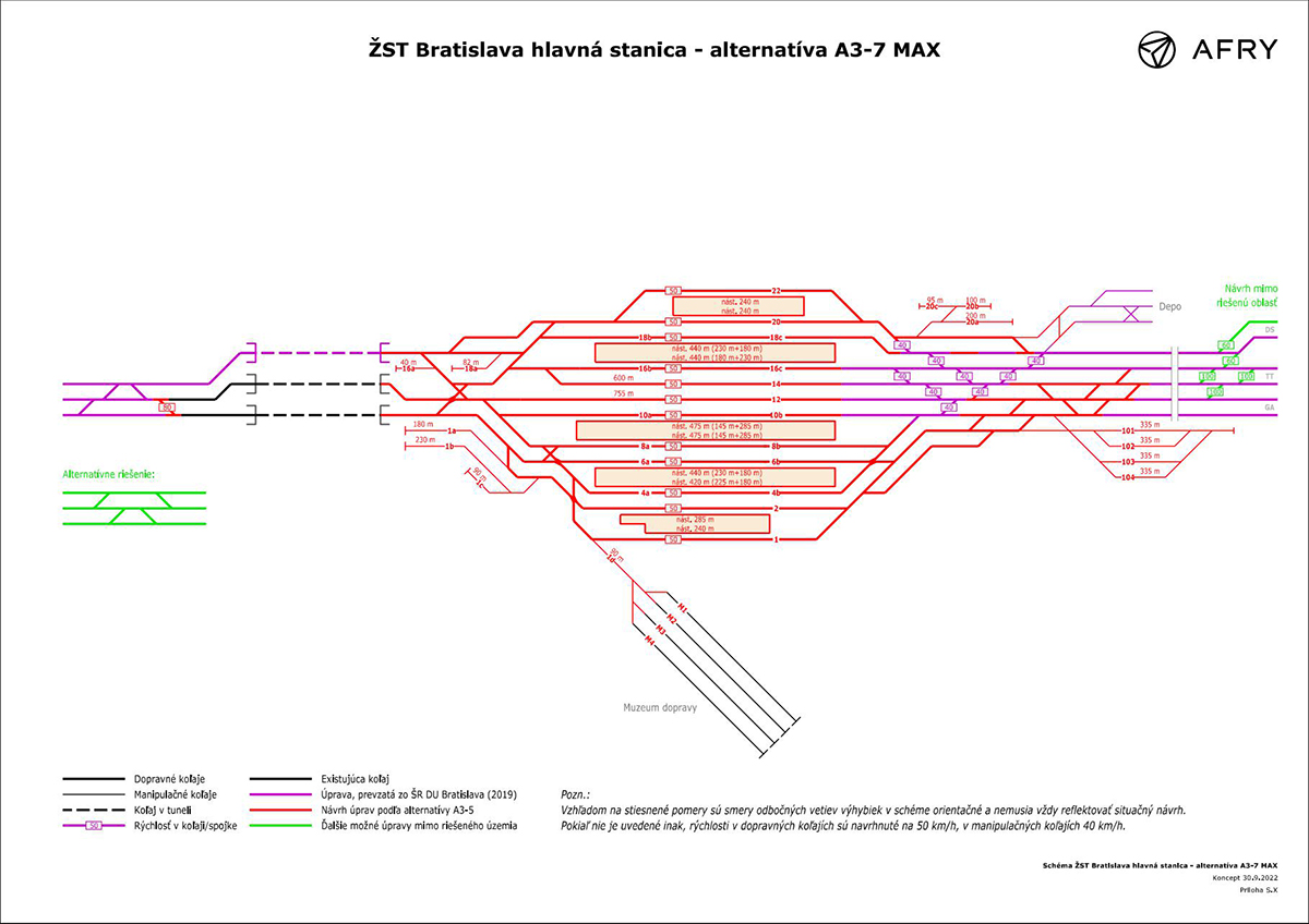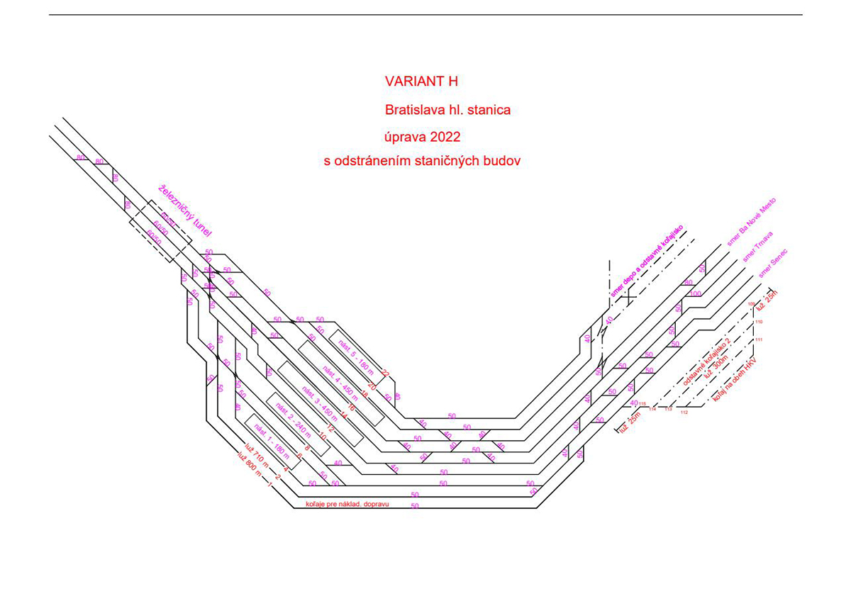 V závere roku 2022 bola spracovaná Overovacia štúdia ŽST Bratislava-hlavná stanica – usporiadanie koľajiska. Zadávateľom bol Metropolitný inštitút Bratislavy, spracovateľom bola spoločnosť AFRY CZ, s. r. o (obr. 4).