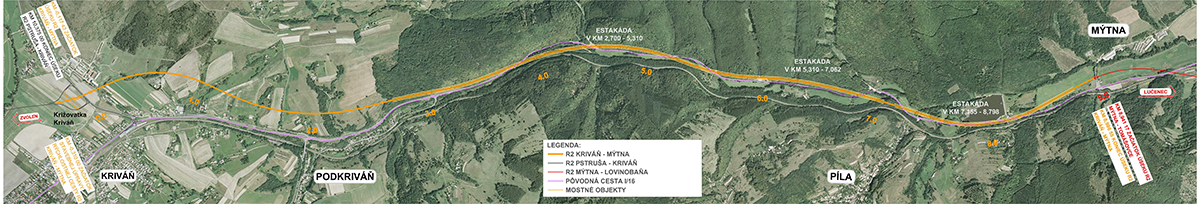 Hlavným dôvodom navrhnutého trasovania bolo minimalizovať zásah do Krivánskeho potoka a jestvujúcich líniových stavieb (cesta I/16 a trať ŽSR) prechádzajúcich údolím Pílianskej doliny. Rýchlostná cesta R2 vedie v tomto úseku v súbehu s cestou I/16 a Krivánskym potokom s ich niekoľkonásobným križovaním.