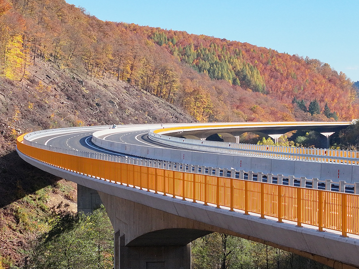 Z celkovej dĺžky trasy tvorí dĺžka mostných objektov 6 208 metrov, čo je pozoruhodných 67 %. Bez zveličenia môžeme tento úsek nazvať ako úsek „vedený po mostoch v korunách stromov“, pri ktorom boli použité rôzne technológie výstavby od monolitických konštrukcií budovaných na podporných skružiach cez prefabrikované z tyčových predpätých prefabrikátov po monolitické konštrukcie budované letmou betonážou, betonážou na výsuvných skružiach, ako aj technológiou postupného vysúvania konštrukcie.