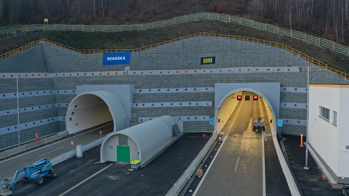 V tuneli a jeho predportálových úsekoch je aplikovaný dvojvrstvový cementobetónový kryt s vysokými nárokmi na presnosť realizácie, rovinatosť a makrotextúru povrchu. Dôležité je aj správne navrhnutie škár, kotiev a tŕňov, ktoré zabezpečujú prenos zaťaženia a obmedzujú vznik porúch.
