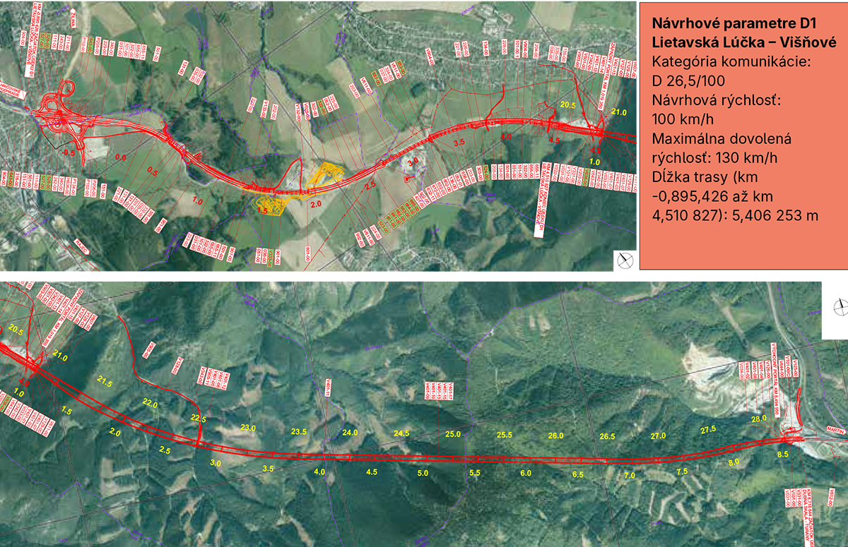 Náročný a komplexný realizačný projekt úseku diaľnice D1 s dosiaľ najdlhším diaľničným tunelom na Slovensku, Višňové, spracovala pre NDS, a. s., spoločnosť Amberg Engineering Slovakia, s. r. o. Diaľnica D1 nadväzuje na začiatku úseku na predchádzajúci úsek D1 Hričovské Podhradie a v priestore východne od obce Lietavská Lúčka križuje diaľničný privádzač Lietavská Lúčka – Žilina. Súčasťou komplexného dopravného riešenia je aj objekt križovatky Lietavská Lúčka, ktorý spája privádzač s vlastnou diaľnicou pomocou jednotlivých križovatkových vetiev.