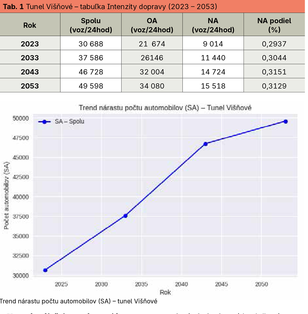 Z hľadiska prevádzkových podmienok je tunel Višňové vystavený dlhodobo vysokému dopravnému zaťaženiu, čo potvrdzujú aj uvedené intenzity dopravy: napríklad v roku 2053 sa predpokladá 49 598 vozidiel za 24 hodín, z toho 15 518 nákladných.