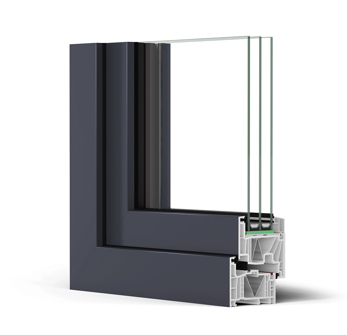 Na rozdiel od polystyrénových výplní sa izolačná vrstva pri zváraní rohov nepoškodí – fólia sa pri zváraní spojí a nevytvára tepelné mosty. Výsledkom je vyššia energetická stabilita konštrukcie a optimalizovaný výrobný proces. Koeficient prestupu tepla profilom dosahuje hodnotu Uf = 0,81 W/m²K.
