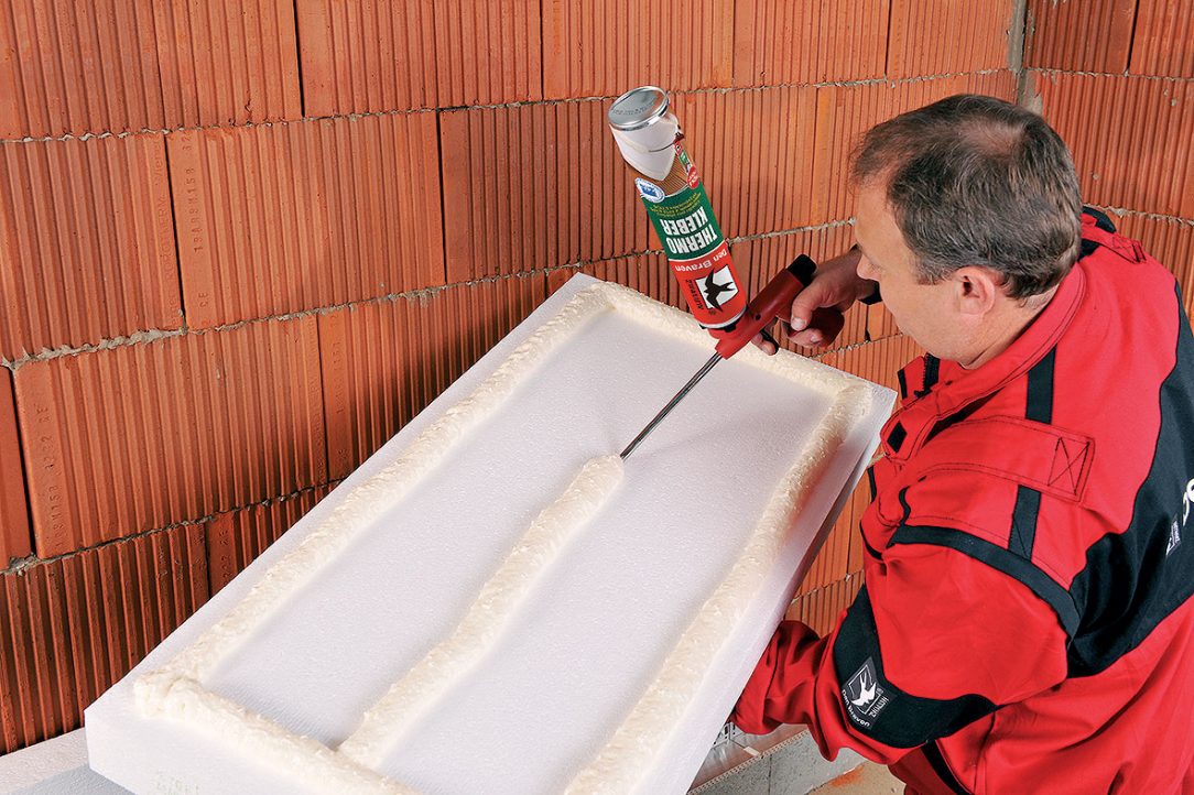 » Jednozložkové nízkoexpanzné polyuretánové lepidlo na lepenie a montáž vonkajších tepelnoizolačných kontaktných systémov (ETICS), na vypĺňanie škár medzi tepelnoizolačnými doskami na báze EPS, XPS, minerálnych vlákien, na lepenie soklového EPS-P alebo XPS.