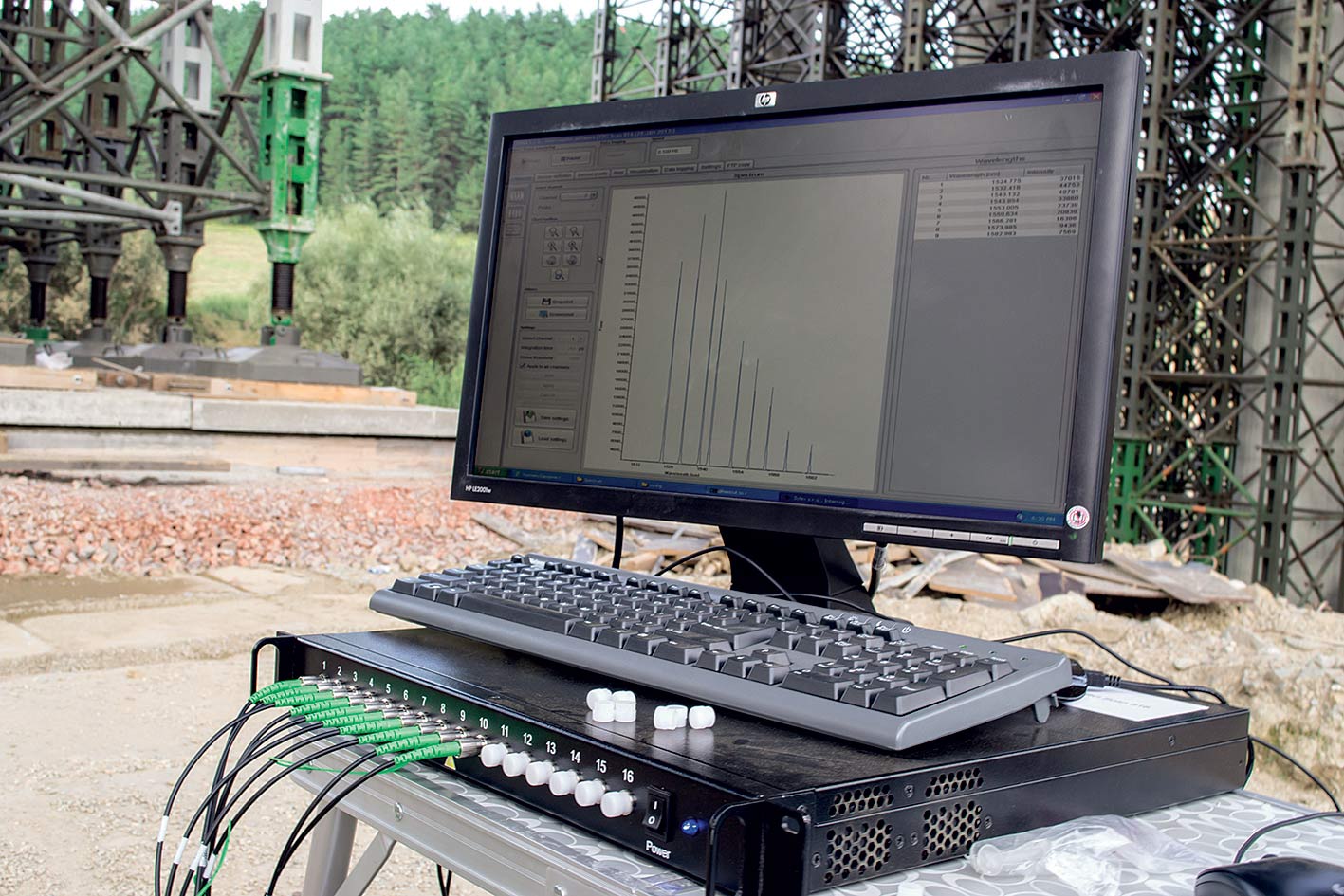 Počítač, ktorý môže byť vzdialený niekoľko kilometrov od meraného útvaru, využíva na prenos dát bežné prostriedky informačnej techniky, servery či mobilné aplikácie. V prípade podpornej konštrukcie v Kurimanoch bola hlavná meracia jednotka umiestnená približne 30 m od miesta merania a odtiaľ sa informácie nahrávali smerom na sever cez sieť GSM. Vyhodnocovanie prebiehalo okamžite, zber meraných dát bol nastavený na interval jedenkrát za sekundu. To znamená, že zo všetkých snímaných bodov sa každú sekundu vedelo, čo konštrukcia reálne robí. Systém sa dá konfigurovať rozličnými spôsobmi, možno ísť aj do kiloherzových zberov, t. j. tisíckrát za sekundu. Interval závisí od posúdenia dynamických vlastností konštrukcií. Ak sa na stavbe nastaví podmienka, že napätosť nemôže prekročiť isté percento alebo promile, po jeho prekročení systém okamžite vyšle alarmovú správu, informáciu, spustí sirénu, zapne semafor, respektíve inú ľubovoľnú akciu, a tá odošle informáciu opäť ľubovoľne nastaviteľným spôsobom – e-mailom, telefonicky či sms správou. Pred začatím merania je potrebné vhodne definovať body sledovania, ktoré určuje statik alebo odborník, a to podľa zámeru monitorovania z hľadiska dlhodobej životnosti konštrukcie. Snímanie a monitorovanie stavby môže prebiehať rádovo v rokoch alebo desaťročiach. Súčasťou monitorovacieho systému je poskytovanie prenosu dát na diaľku, ich zdieľanie medzi servermi a výstupy do zrozumiteľných formátov. Merací server možno umiestniť aj u výrobcu snímačov, ktorý na požiadanie odovzdáva len zvolené merané dáta. Ide o formu obchodného modelu, ktorý sa čoraz častejšie využíva v zahraničí.