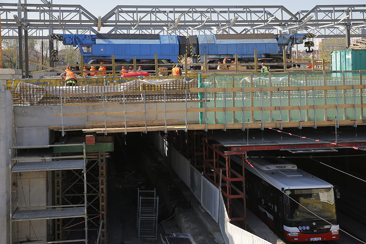 Záťažová skúška mostu cez ulicu Průběžná 03