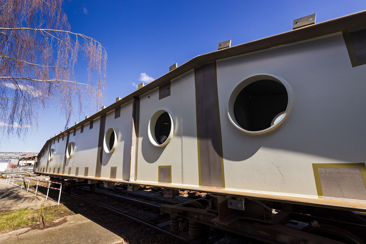 Manipulácia s nadrozmernými oceľovými dielmi vrát pre vodné dielo Gabčíkovo pri lakovaní v Horných Počerniciach. 2