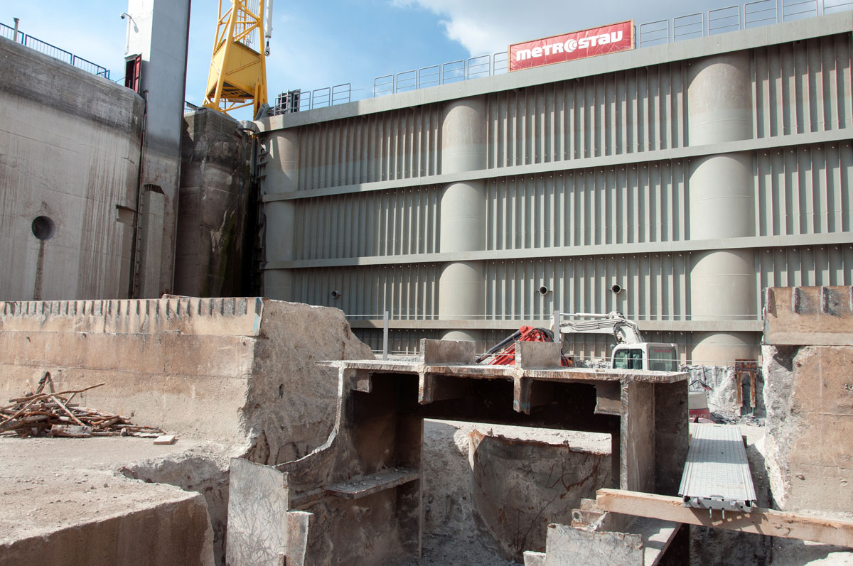 Postup búracích prác na pravej plavebnej komore Vodného diela Gabčíkovo 2
