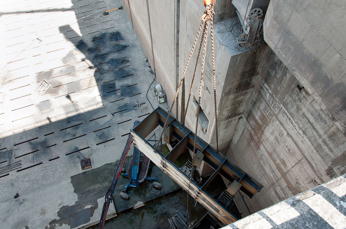 demontáž oceľových vrát pravej plavebnej komory Vodného diela Gabčíkovo 6