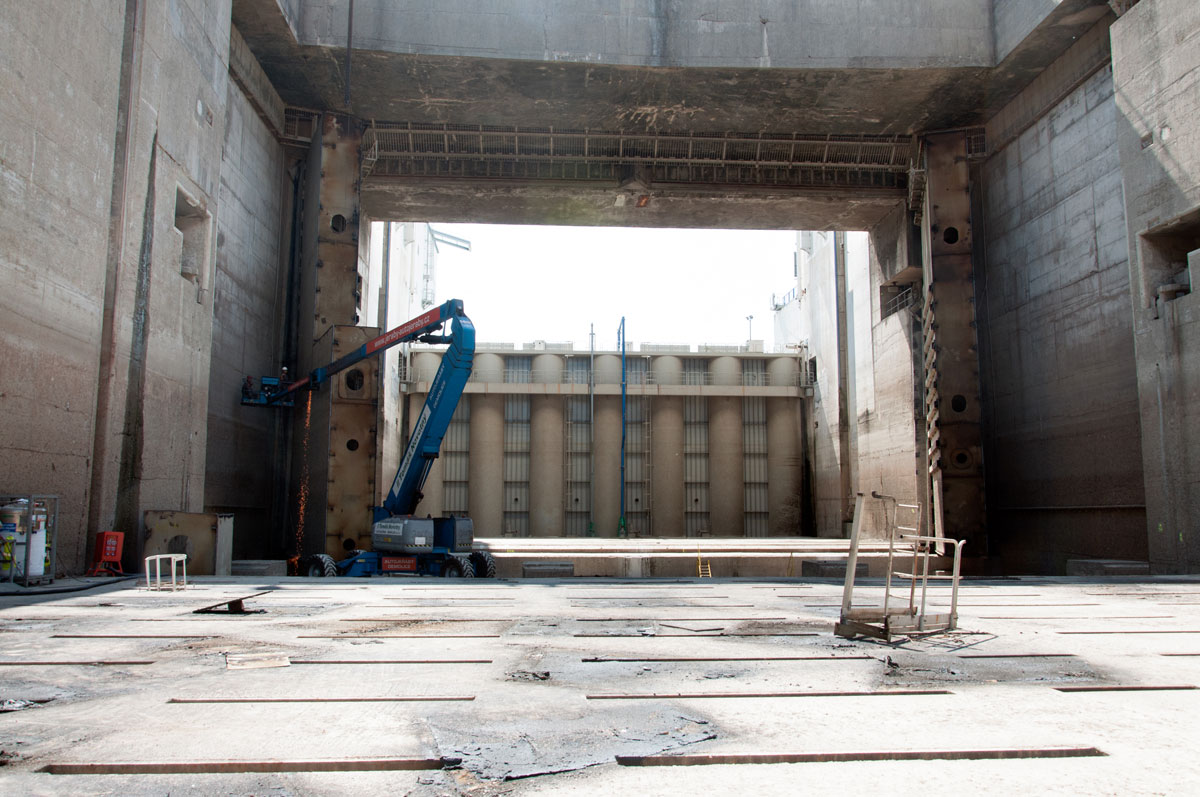 Oceľové vráta z pravej plavebnej komory sú odstránené.