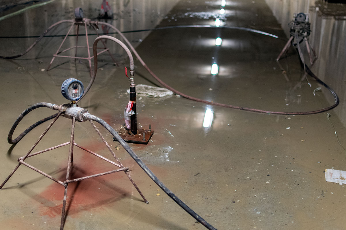 Po realizácii skúšobných injekčných polí a overení všetkých postupov sa začali práce na sanácii podložia.