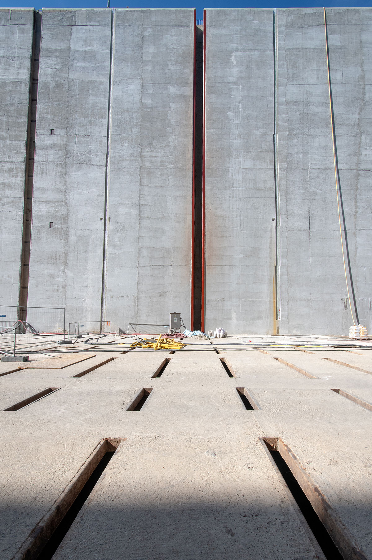 Práce na osádzaní oceľových armatúr vodiacich drážok pre pohyblivé bitvy.