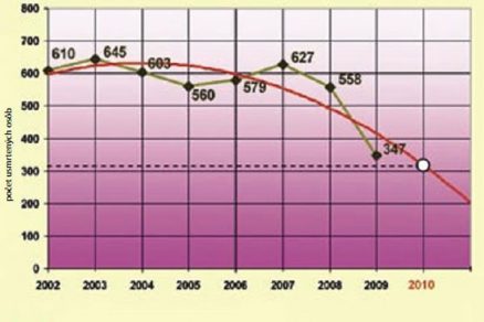 Aký je vývoj dopravných nehôd so smrteľnými následkami na slovenských cestách? V roku 2002, ktorý je podľa Národného programu na zvýšenie bezpečnosti cestnej premávky na 2. polrok 2005 a s výhľadom do roku 2010 východiskovým rokom na porovnanie 50-percentného zníženia smrteľných nehôd, zahynulo na slovenských cestách a diaľniciach 610 osôb. V porovnaní s rokom 2009, keď zomrelo pri dopravných nehodách 347 osôb, možno poukázať na 43,1-percentný pokles smrteľných následkov pri dopravných nehodách za 7 rokov.