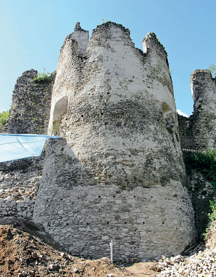 Obr. 5 Poškodenie nástennej maľby poľovníka ktoré bolo spôsobené osekávaním omietky bez predchádzajúceho výskumu.