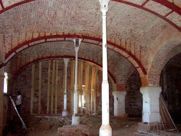 Pri sanácii porušených klenieb nad druhým podlažím bolo treba zabrániť ich ďalšiemu nevhodnému zaťažovaniu uprostred ich rozpätia. Pri riešení tohto problému sa skúmalo niekoľko rôznych spôsobov. Ako vhodné riešenie sa ukázalo podopretie stĺpov novými oceľovými nosníkmi. Reakcie stĺpov sa tak prenášali priamo do obvodových múrov a stredných pilierov.