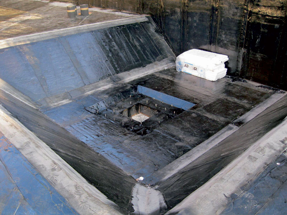 Prvá vrstva vodotesnej izolácie sa na vodorovných konštrukciách realizovala z voľne ukladaných pásov s rozmermi 2 × 10 m, spojených iba v presahoch. Na túto vrstvu sa celoplošne natavila druhá vrstva z klasických pásov s metrovou šírkou. Na zvislé konštrukcie sa použil dvojvrstvový natavovací systém z klasických asfaltovaných pásov modifikovaných SBS s metrovou šírkou.