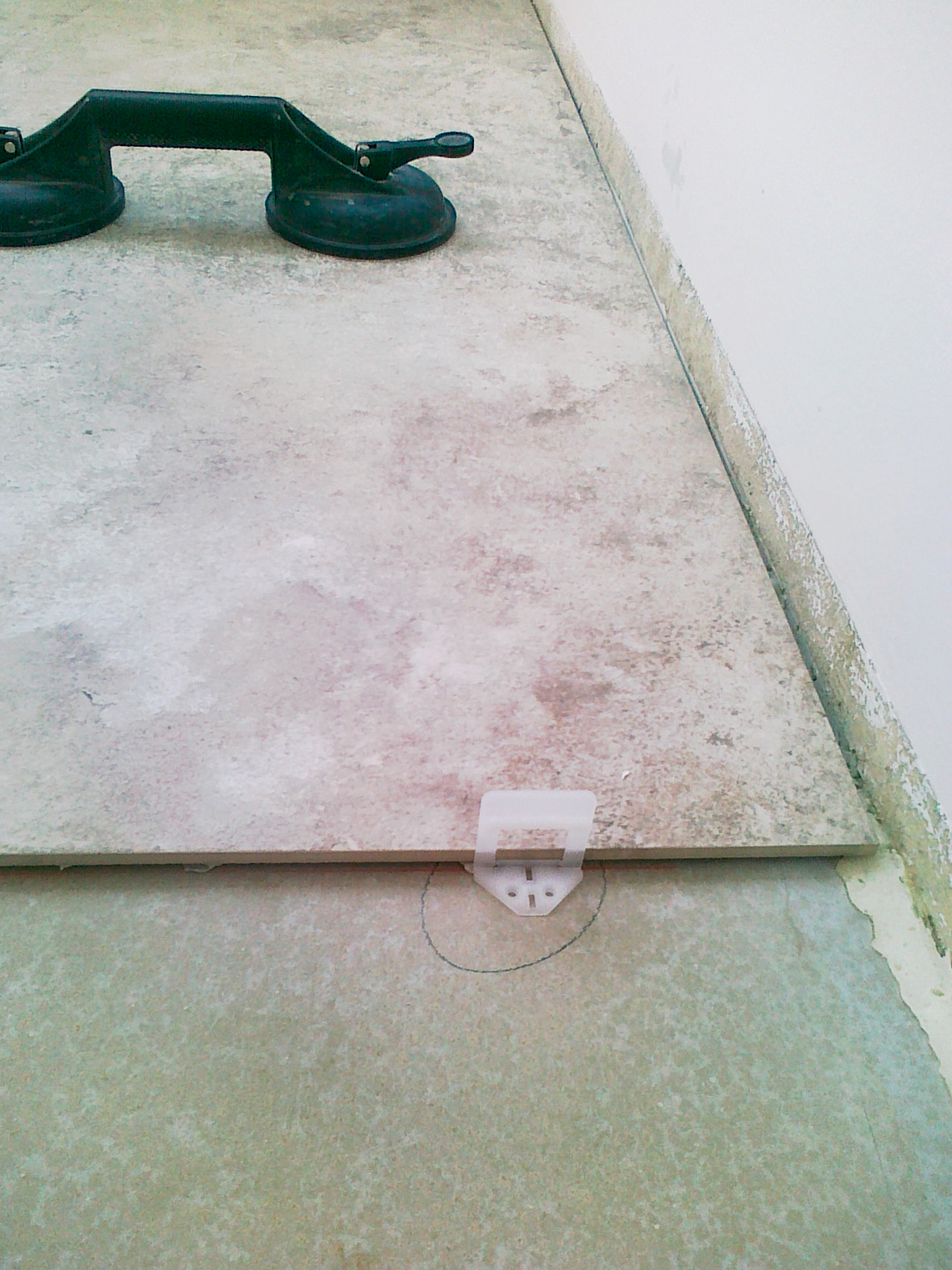 S obkladovým prvkom by mali manipulovať minimálne traja ľudia. Najväčší problém je dostať veľkoplošné formáty na stavbu a manipulovať s danými formátmi pri lepení. Podľa normy STN EN 12004 + A1 sa odporúča na lepenie obkladov a dlažieb použiť flexibliné lepidlo. Kladenie obkladových prvkov sa musí robiť kombinovanou metódou. Na podlahy a steny sa aplikuje lepidlo zubovou stierkou č. 8. Pri formátoch väčších ako 1 500 × 1 500 mm sa odporúča na rubovú stranu obkladov a dlažieb aplikovať lepidlo stierkou č. 6. Na menšie formáty, napr. 600 × 1 200 mm, sa lepidlo aplikuje na podlahy a steny zubovou stierkou č. 10 a na rubovú stranu dlažieb a obkladov sa aplikuje len hladidlom. Korekciu dlažieb a obkladov je možné robiť približne počas 3 min. Po položení dlažby je potrebné odstrániť prebytočné množstvo lepidla po obvode dlažby, aby sa po nalepení ďalšej dlažby nezaniesla škára lepidlom. To platí aj pri lepení na steny. Dlažby a obklady sa potom vyrovnajú pomocou vyrovnávacích klinov (leveling systems), ktoré sú účinnou pomôckou pri ukladaní. Použitím klinov sa odstránia nerovnosti medzi jednotlivými doskami (nevznikajú výškové nerovnosti, tzv. zuby).