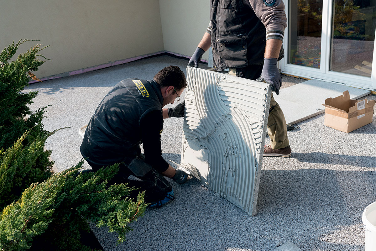 Lepenie veľkoformátovej dlažby na terase (Pracovný postup)