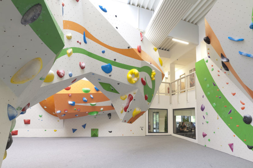 Novopostavenú halu tvoria dve časti. V prvej sa nachádza recepcia, požičovňa lezeckého materiálu, predajňa, reštaurácia, jogové štúdio, školiaca miestnosť, šatne a sociálne zariadenia. Stojí tu tiež boulderová stena s lezeckou plochou 530 m2 na lezenie krátkych ciest bez lana.